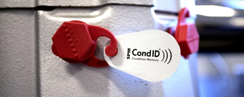 The memory tag is hung on the adapter cap or strapped in a suitable place on the machine. It responds to a recognition signal when the portable instrument is held close to the tag. The information on the tag will open the correct measuring point in the measuring round and the instrument is ready for measurement. All tags are safeguarded and can only be read by instruments manufactured by SPM Instrument.