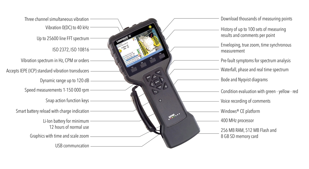 The instrument is an excellent choice where a full range of measuring techniques and high analytical power is required to monitor plant equipment.