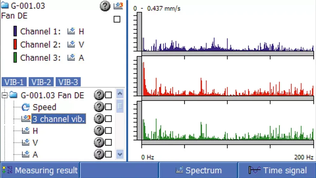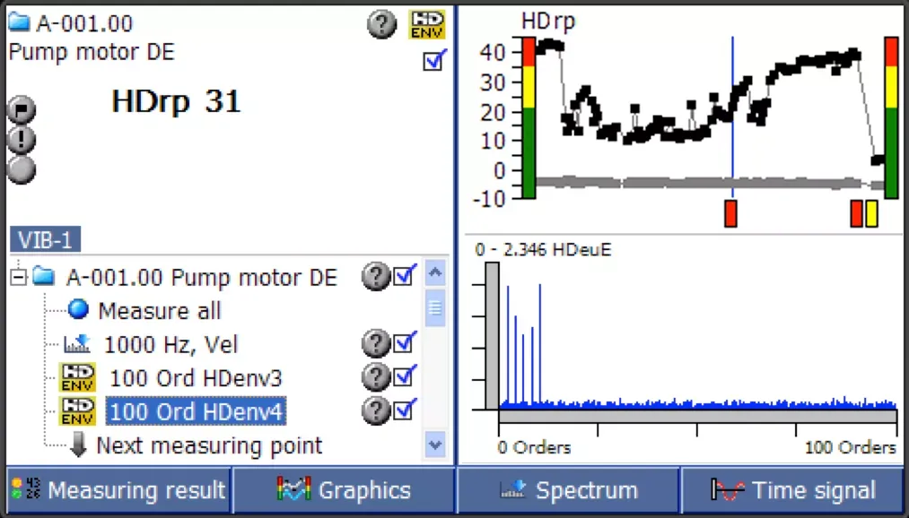 The EVAM (Evaluated Vibration Analysis Method) measuring technique produces up to 25600 line spectrum with true zoom, provides ready-made machine 'fault symptoms' as well as trending.