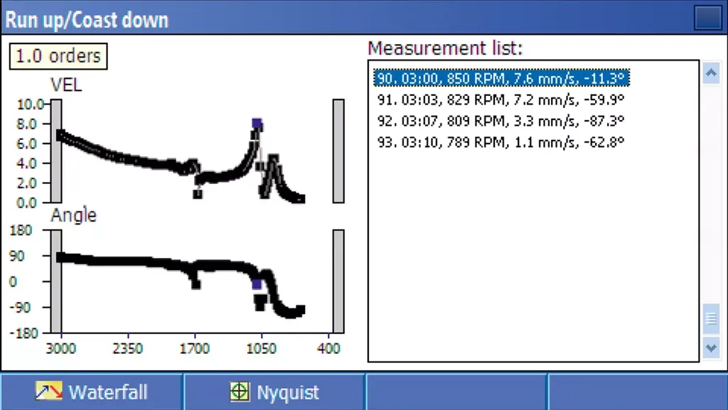 Run up/Coast down measurement and Bump test are tools for root cause analysis and show the machine frame vibration characteristics, resonance frequencies, and the reaction at critical speeds.