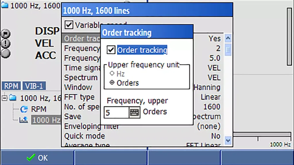 On machinery operating under variable speed, vibration analysis with HD Order Tracking provides reliable data and crystal clear measuring results even when RPM varies greatly during the course of measurement. Order Tracking is applicable in a wide RPM range, from just a few to thousands of revolutions per minute.