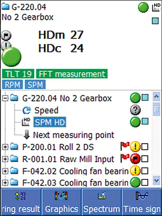 The EVAM (Evaluated Vibration Analysis Method) measuring technique produces up to 12800 line spectrum with true zoom, provides ready-made machine 'fault symptoms' as well as trending.