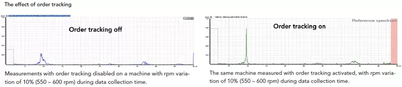 On machinery operating under variable speed, analysis with HD Order Tracking provides reliable data and crystal clear measuring results even when RPM varies greatly during the course of measurement. Order tracking is applicable in a very wide RPM range, from just a few to thousands of revolutions per minute.