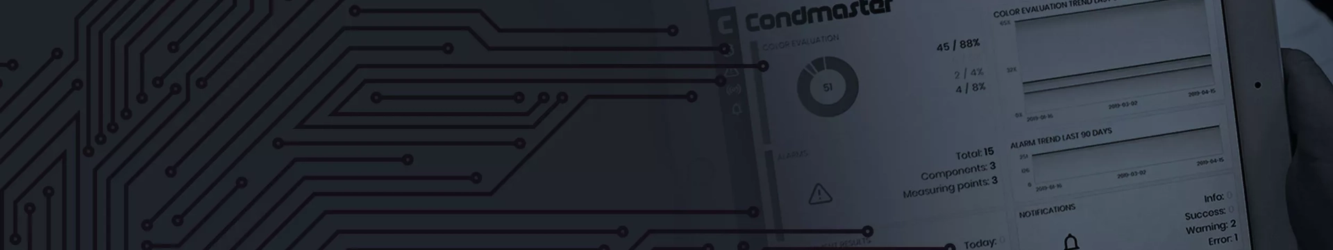 Simplicity is at the core of Condmaster.NET. Supporting all web browsers, it presents an intuitive and easily accessible overview of color evaluation and alerts and offers basic analysis functionality. Application-specific, customized dashboards to visualize and monitor process data can be created on request.