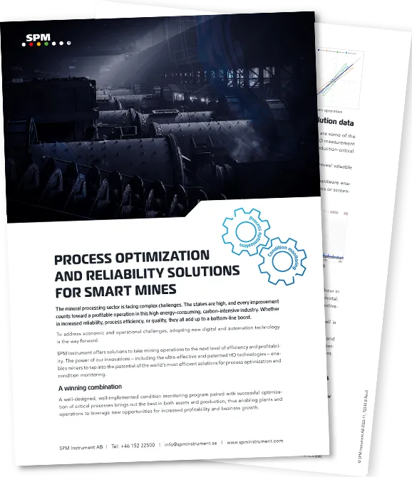 The mining industry is a heavy industry where condition monitoring equipment must survive mechanical and environmental forces. The SPM product range includes portable instruments, online systems and accessories specifically suited for shock pulse monitoring of rotating machinery and vibration monitoring equipment for detecting misalignment, gear problems, balancing problems etc. On slowly rotating machinery, the SPM HD® measuring technique can be used with benefit. SPM HD uses RPM based sampling frequency and algorithmic correlation techniques to ensure the highest possible signal quality and razor sharp spectrums for analysis.